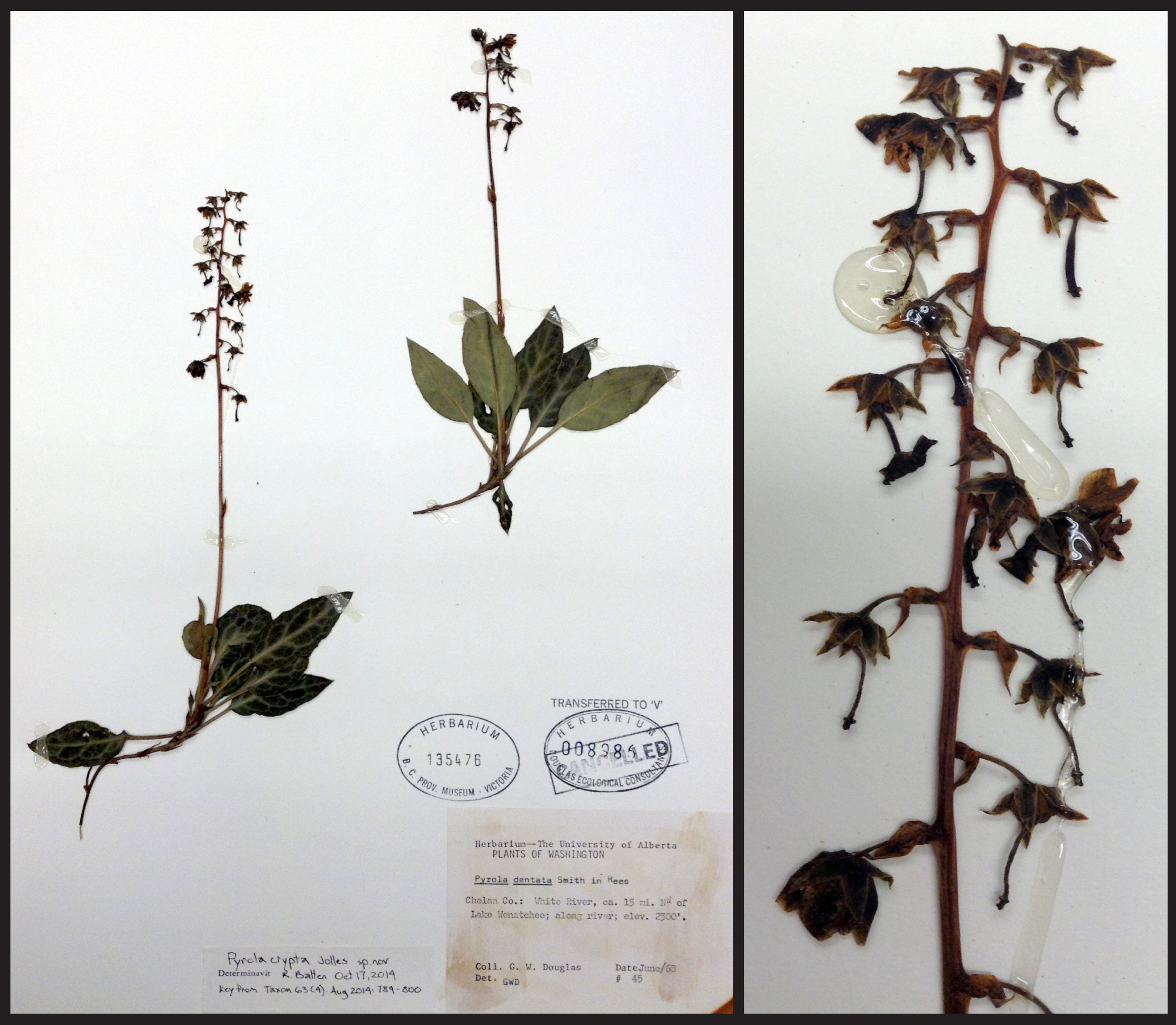Included in the email was a freshly annotated specimen (see below) from Chelan County, Washington; a dead ringer for Pyrola crypta.Pyrolacrypta